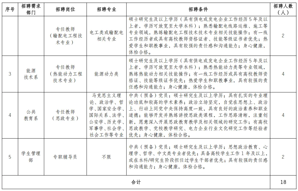 附件:2026年长沙电力职业技术学院招聘计划岗位及条件、长沙电力职业技术学院3月校园招聘安排表