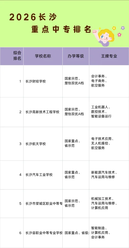 ✅ 区县重点:望城中专、长沙县中专(国家重点,本地适配性强)