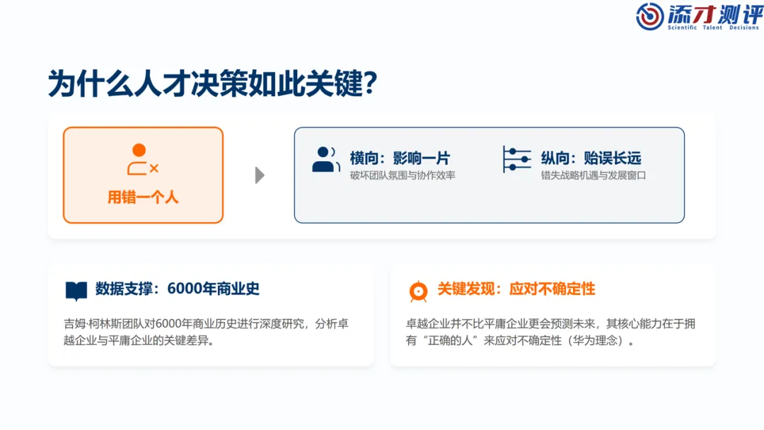 “单一维度评估,难以全面把握人才。”蒋军老师强调,用错一个人的代价,横向影响一片,纵向贻误长远——既破坏团队氛围与协作效率,又错失战略机遇与发展窗口。