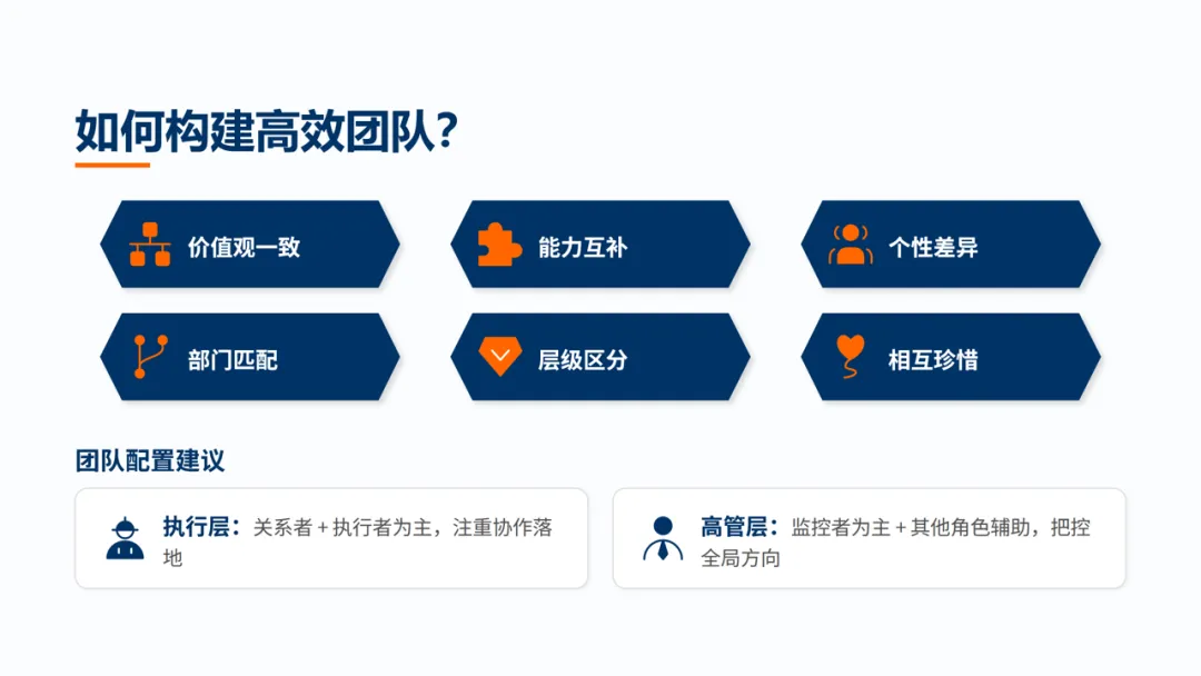 基于五星识别,蒋军老师进一步分享了高效团队的构建逻辑: