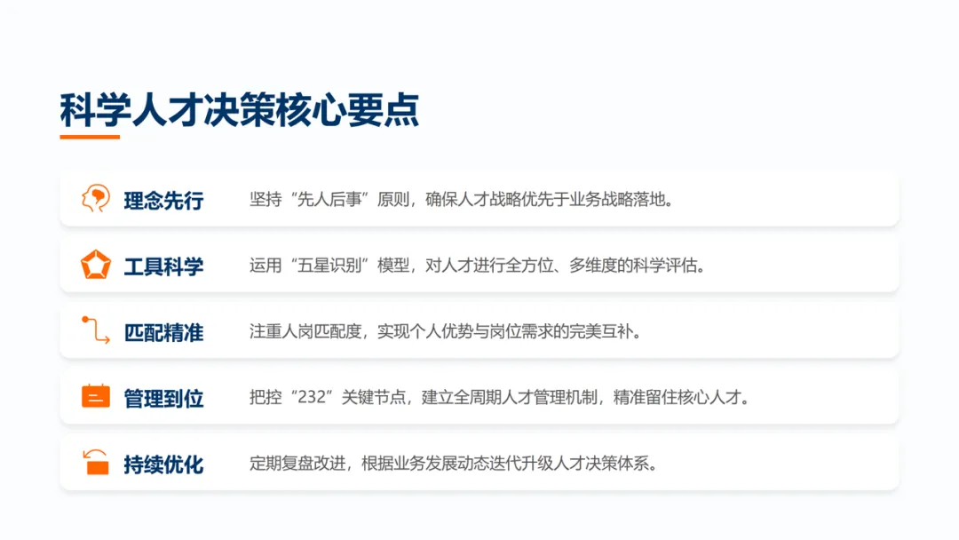 蒋军老师提炼了科学人才决策的五大核心要点:
