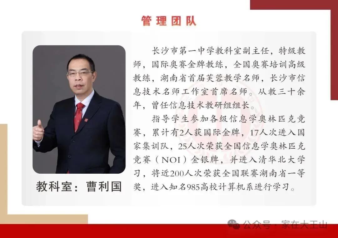 初中部由长沙市一中直接管理,一体化办学,学校领导团队实力强悍。