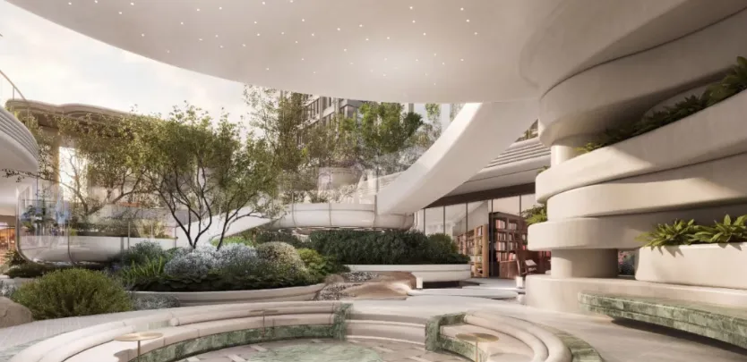 建筑以"生长+书院"为灵魂,融入"林间树屋"童趣设计,打造城市书院及童趣空间,并以全公建化外立面,打造现代美学建筑。