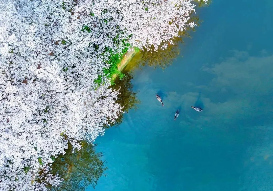 游园体验更丰富:天鹅湖、揽月亭新增艺术装置,汉服爱好者可自带道具,在樱花大道定格人生照片。