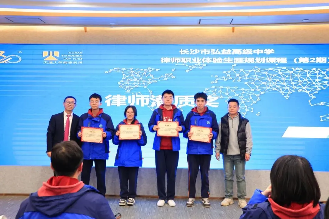 第三环节,天地人专业律师带领同学们开展了法律知识竞猜和模拟法庭辩论活动。活动在资深律师的评审下,由学校与律所共同对表现突出的同学授予“最具律师潜质奖”与“律师潜质奖”荣誉称号。