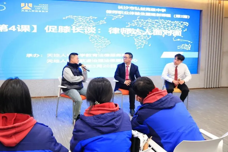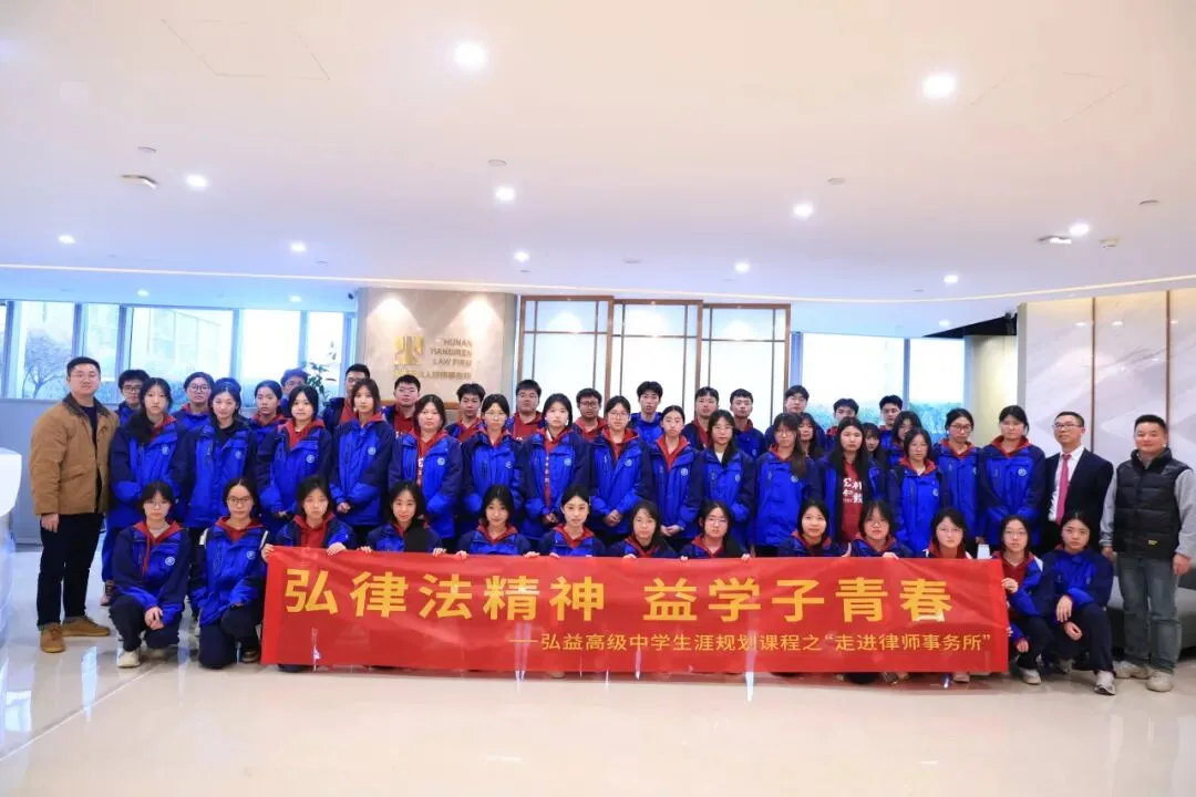 2026年3月20日下午,我校高2413班全体同学在班主任和学校生涯发展指导中心老师的组织陪同下,走进了湖南省天地人律师事务所,开展了一场律法职业方向参观体验活动。