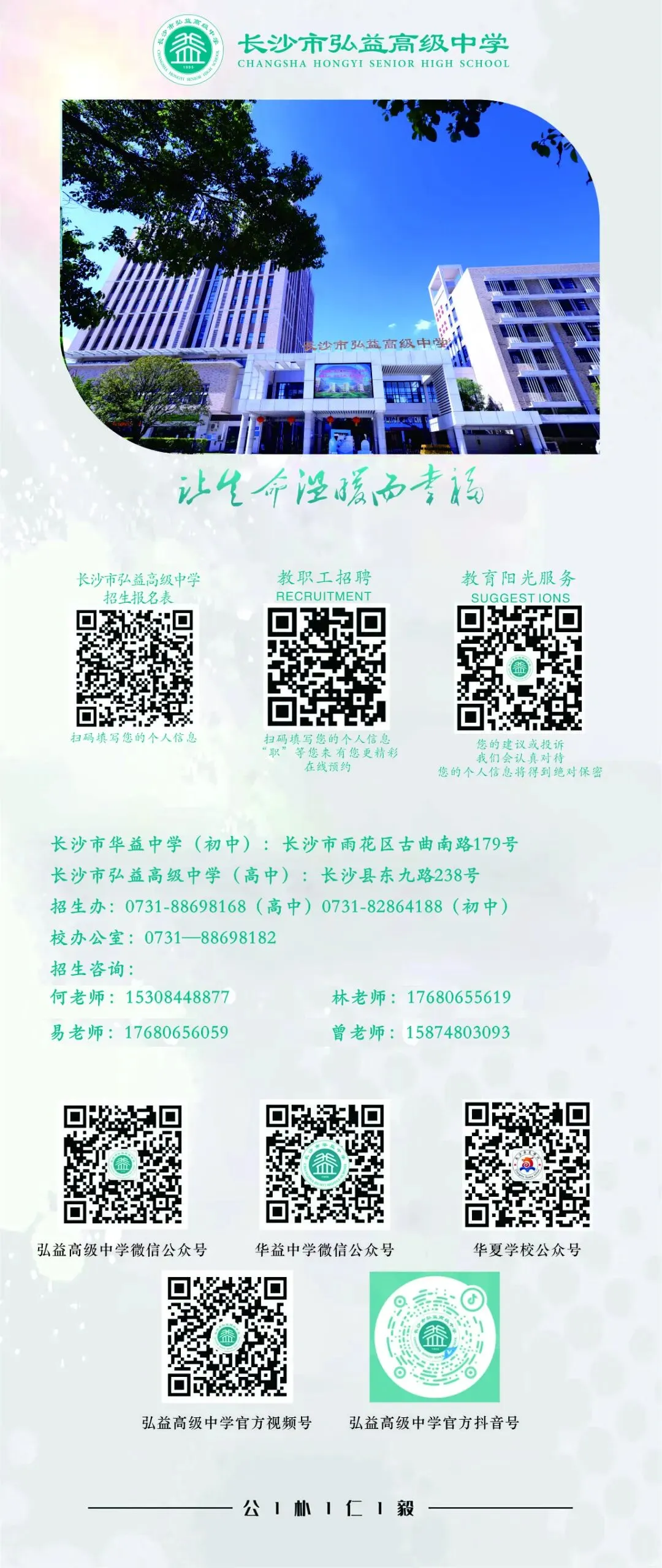为了更好地指导学生生涯发展,长沙市弘益高级中学将《职业体验生涯规划课程》纳入学校的课程体系。结合学校、社会、家庭资源,为学生搭建平台,引导学生参与职业体验,拓展职业实践活动,明确自己职业发展方向,科学规划高中学业,培养未来社会发展需要的能力。