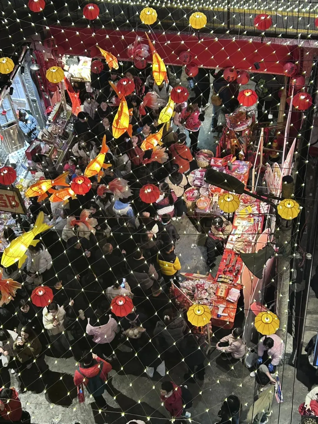 一路走一路看,到处都是人潮涌动,到处都是灯火璀璨,年味一下就拉满了。