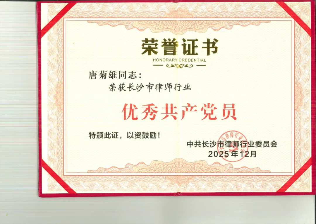 2026年3月20日,长沙市律师行业基层党组织书记现场述职暨2025年度“两优一先”表彰会议召开。京师长沙律所党总支书记、律所主任唐菊雄荣获“优秀共产党员”称号,第一党支部书记、团支部书记鲁仁智律师获评“优秀党务工作者”。