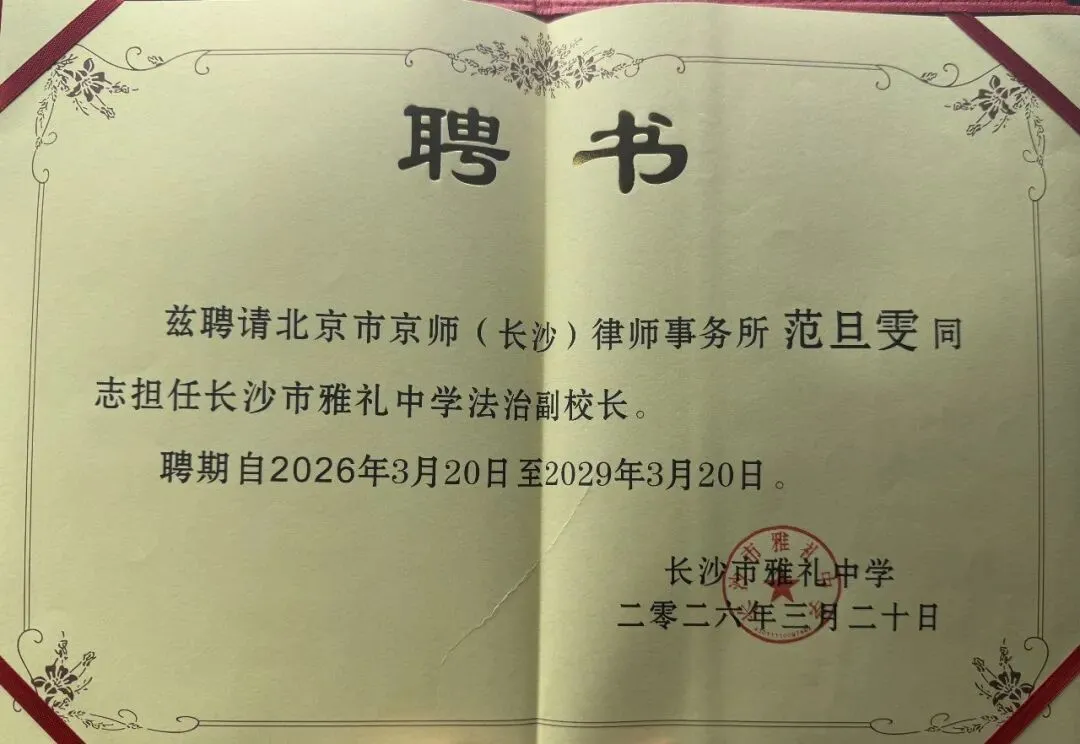喜报 | 京师长沙律所联合创始人范旦雯受聘担任长沙市雅礼中学法治副校长,助力校园法治建设