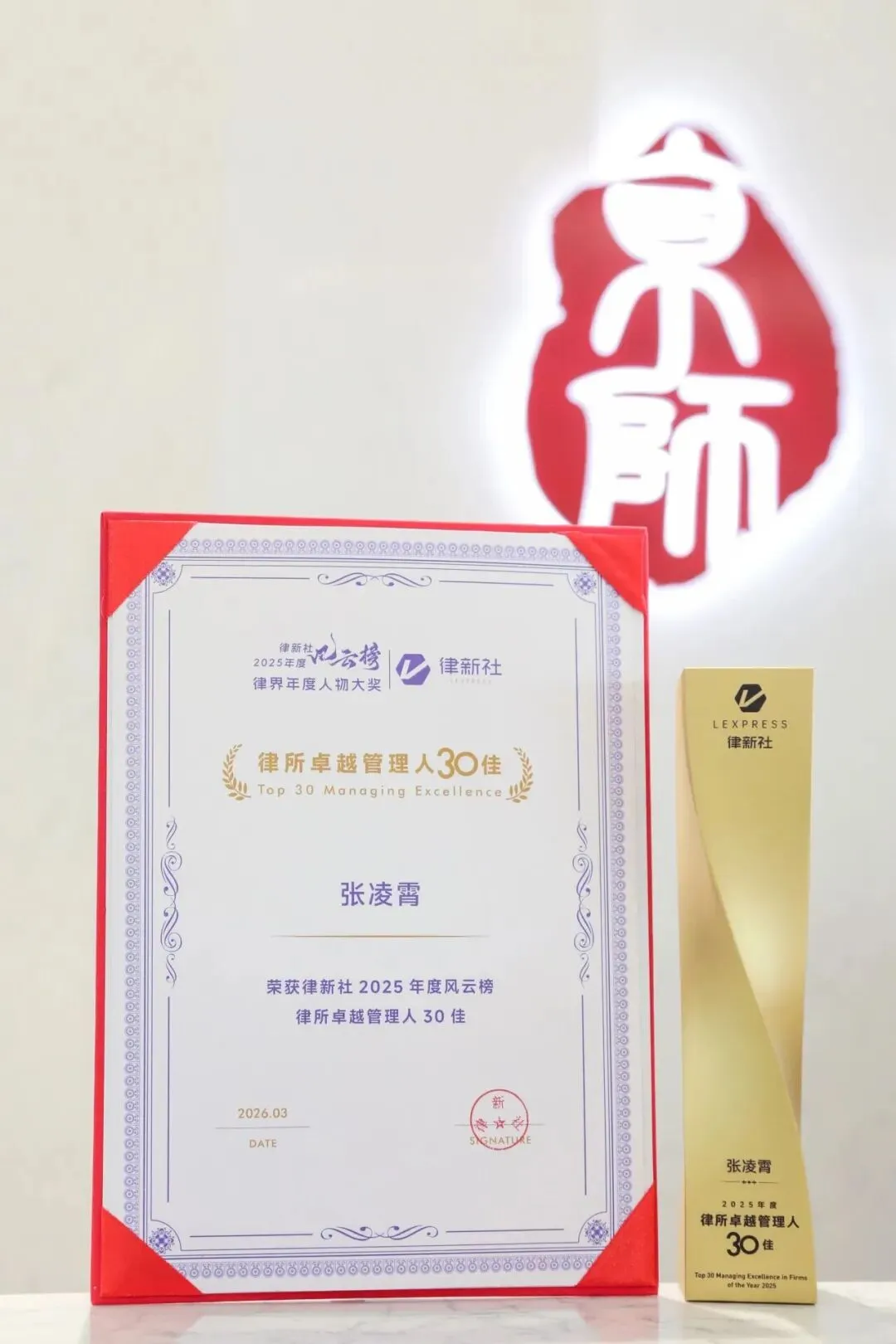 2026年3月14日,“东方潮涌 到世界去”第四届法律服务业品牌发展论坛暨律新社2026品牌盛典隆重举行,现场发布了律新社《律所卓越品牌影响力指南(2025)》。京师律所党委书记、主任张凌霄荣获“律新社年度风云榜:2025年度律所卓越管理人30佳”,充分彰显了张凌霄主任在律所管理领域的卓越贡献与深厚实力,也体现了业界对京师律所持续创新发展的高度认可。
