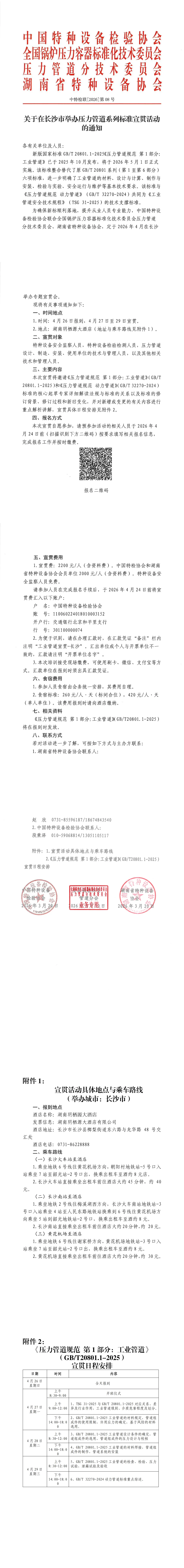 关于在长沙市举办压力管道系列标准宣贯活动的通知