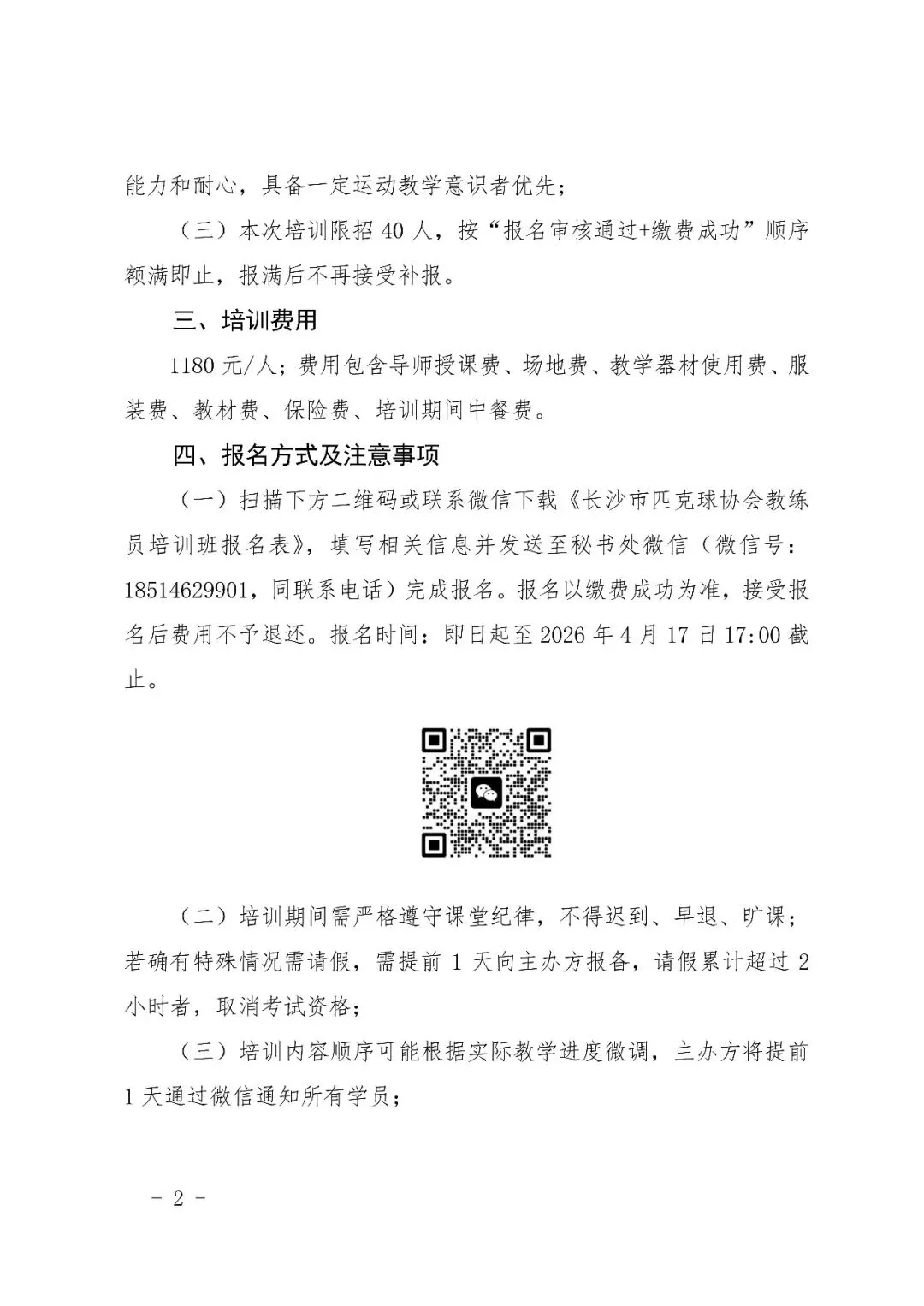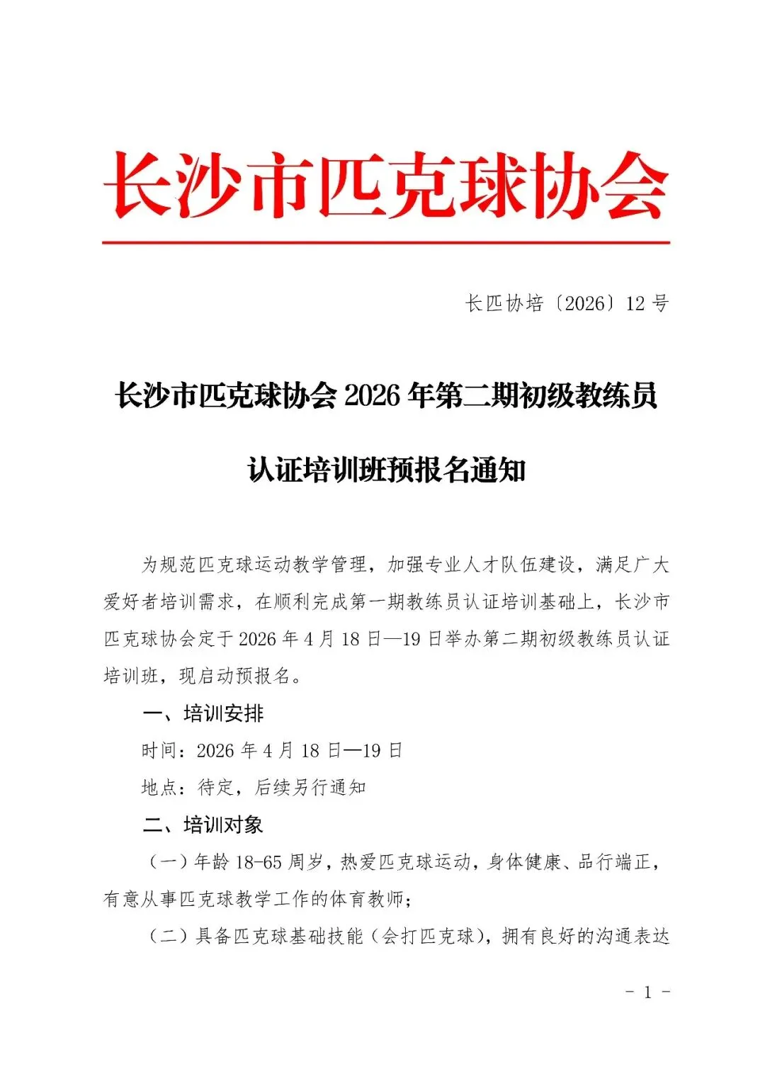 >长沙市匹克球协会 2026 年第二期初级教练员认证培训班预报名通知
