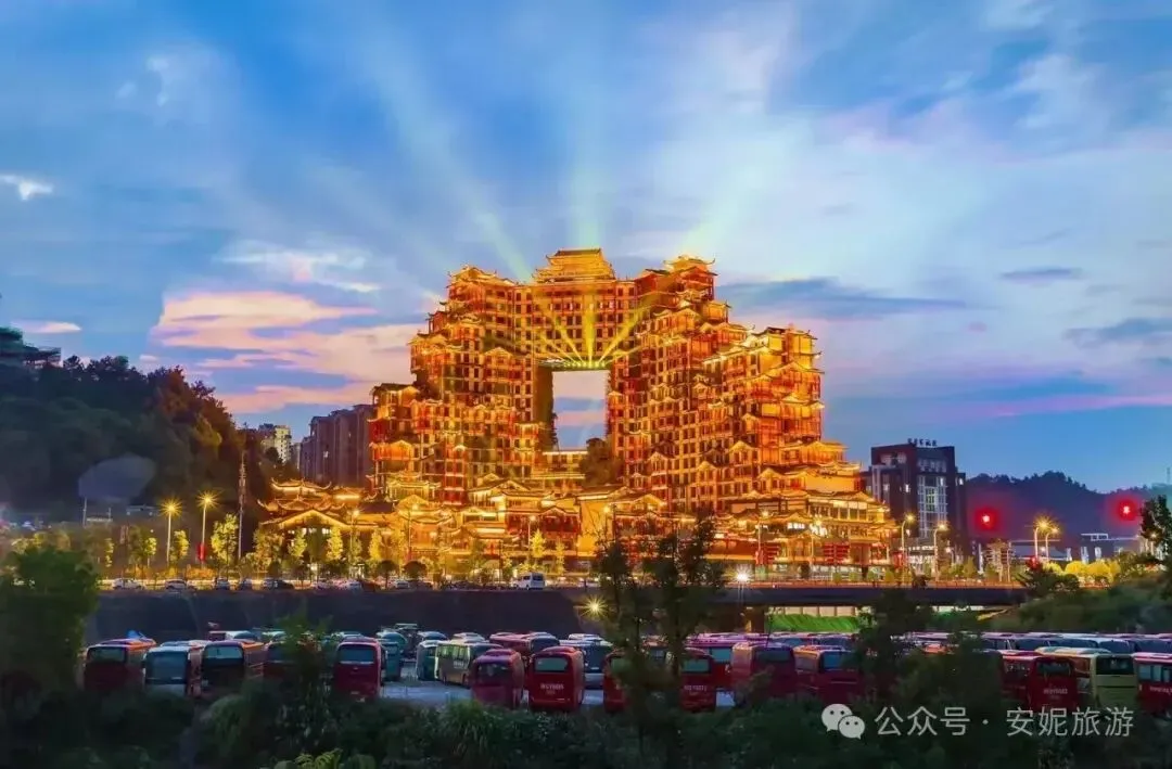 晚餐後外觀【七十二奇樓】 欣賞絕美夜色燈光秀,這是張家界文化旅遊新地標建築,是最火爆的網紅打卡點,被成為“土家族的洪崖洞”。