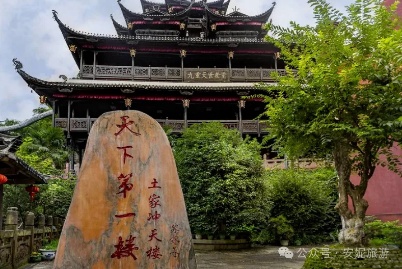 參觀【土家風情園】,張家界土司城就是原大庸國最早的古城遺址,,土家風情園以當地湘西的土司城堡為基礎建造而成,這裏有全國大、高的木質結構吊腳樓,在這裏可以領略到土家族山寨風貌和精彩的土家族民俗風情。參觀乳膠展示。