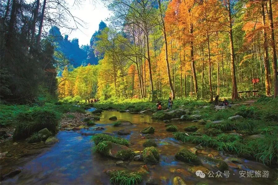 早餐後,遊覽“世界上最美麗的峽穀之壹”的【金鞭溪】【水繞四門】【十裏畫廊】景區,金鞭溪全長6.5公里,自西向東貫通森林公園,兩岸奇峰屏列,漫步穿行在峰巒幽谷間,溪水明淨,跌宕多姿,小魚遊弋其中。