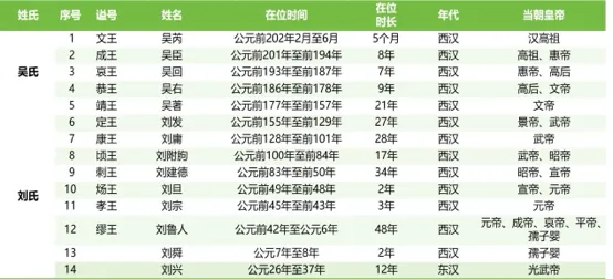 吴姓第一代王吴芮已经介绍,刘姓第一代王刘发也相当了的。刘发是汉景帝刘启第六子,属于意外中的皇子。传景帝酒后要临幸程姬,程姬正逢月事,命其侍女唐姬侍寝。景帝酒醉,以为是程姬,唐因此怀孕,生下长沙王刘发。但这个出身卑微的皇子并没有受到汉景帝的喜爱,从他所分封的长沙国就可以知道,当时的长沙属于蛮夷之地,面临来自南越的威胁。但正是这位不被待见的皇子,却成了东汉皇帝的直系祖先,他是光武帝刘秀与更始帝刘玄五世祖,历史往往就是这么有趣,“汉景帝妃子程姬的一次例假,延续了一个强大的王朝”。下表为历代长沙王在位时间及所处的西汉王朝:
