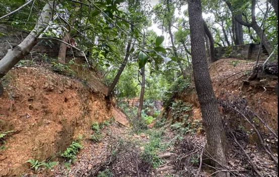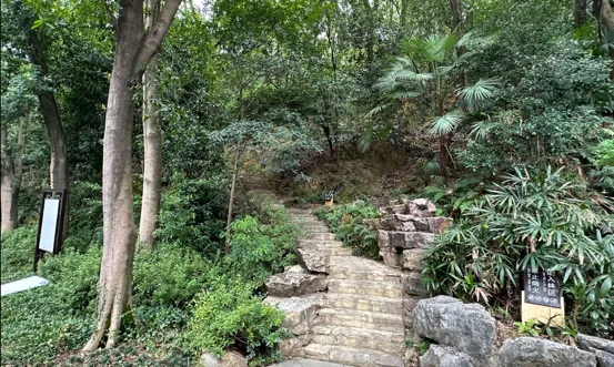 无心欣赏风景,一路直奔主题,步行约一百多米,看到“长沙国王陵墓群-象鼻山墓区”标志,旁边就是登山口,沿此处到山顶就是长沙王吴著的陵墓所在。