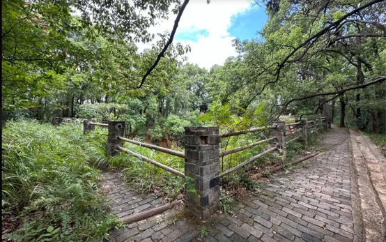 望月公园并不大,步入公园一条林荫大道,左侧就是象鼻山,扇形山和狮子山,右边是铜盆湖,从帝/王陵的风水学上”两边有抱,后面有靠,前面有照,照中有泡”,两边有抱,表示左右两边都有山环抱,后面背靠山,前面有水,而望月公园正是“三山一水”的格局。
