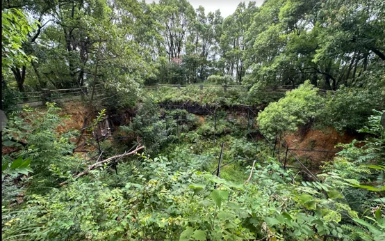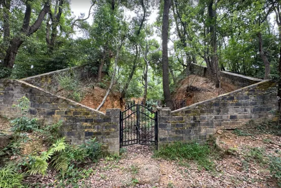 我环绕深坑一周,找到了当年的墓道口,这里已经被上了锁,虽然不能进去,但也基本看到里面的样子。