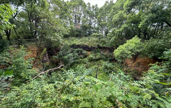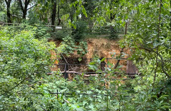 象鼻山不高,海拔仅67.7米,拾阶而上,很快就到达了山顶,登上山顶,远远看见一处被围栏围起的深坑,这里就是当年发现长沙王墓冢的地方。