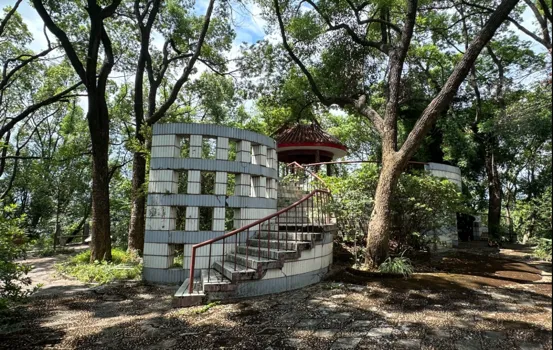 扇形山顶,有一座螺旋亭