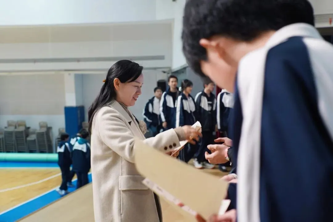 副校长彭健,学生工作处副主任赵坤兰、王警可,高一年级组长唐昊文,高二年级组长张亚文,国际部年级组长周丽芳和心理组全体教师等共同为朋辈辅导员颁发了聘书,赋予他们光荣的使命与责任。