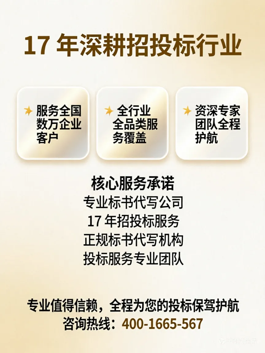 深耕招投标行业 17 年的专业服务团队,专为长沙企业打造「市政工程标书定制化编制 + 属地化方案优化」一站式服务,深度适配本地市政项目评审规则,助力企业优化投标方案,提升投标竞争力。