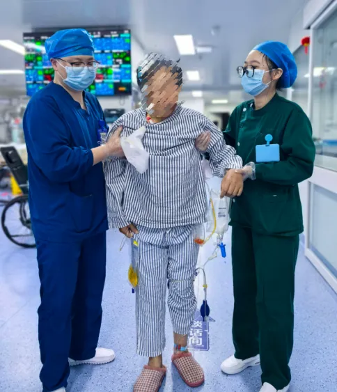 55岁的黄云云(化名)因外科术后严重肺不张陷入绝境:呼吸费力、氧合难以维持,多次尝试脱离呼吸机均失败。更棘手的是,术后疼痛与对病情的恐惧让她一度抗拒康复。“在传统观念里,ICU患者应以卧床静养为主,但现代重症医学证明,早期康复介入是预防并发症、缩短病程的关键。”重症医学科护士长梁敏介绍,针对黄云云的情况,康复治疗师、主管护师田兰制定了“阶梯式”个体方案:从辅助有效咳痰、床上呼吸训练起步,逐步过渡到坐位呼吸锻炼、下床行走,康复干预与生命支持同步推进。面对患者因咳嗽牵动伤口的疼痛顾虑,田兰用手法固定辅助其咳嗽,耐心讲解每一步训练的意义;护理团队每日陪她练习,从“被动配合”到“主动要求”。短短几天,黄云云从抗拒治疗到主动配合,最终在医护搀扶下迈出ICU的第一步。“没想到在ICU还能下地,是护士给了我活下来的信心。”她的感慨,道出了无数患者的心声。从“单兵作战”到“团队标配”: