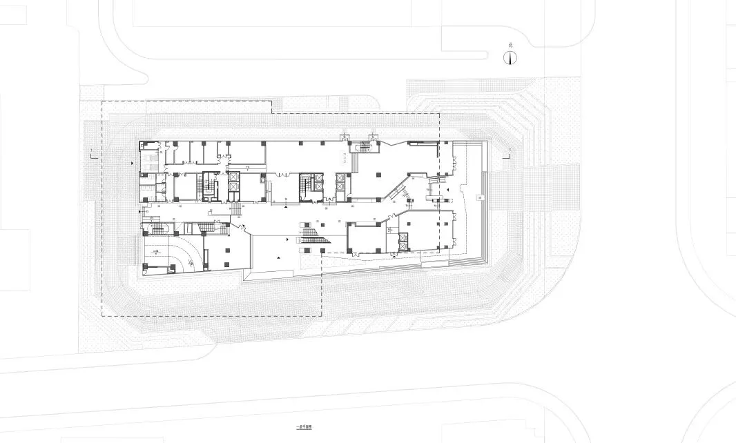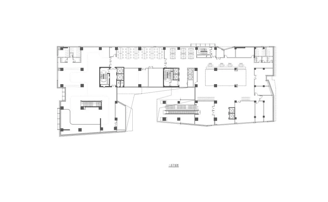 裙房及首层对外开放;二层集中布置查询、阅览及陈列展示功能,大扶梯连通首层架空层,拓展公共流线;三至五层为内部办公与档案整理用房,与上部库房便捷联动且隔离外部干扰;六至二十二层为档案库房,以核心筒为中心划分为三个库区,最短走道连接,提升管理效率。