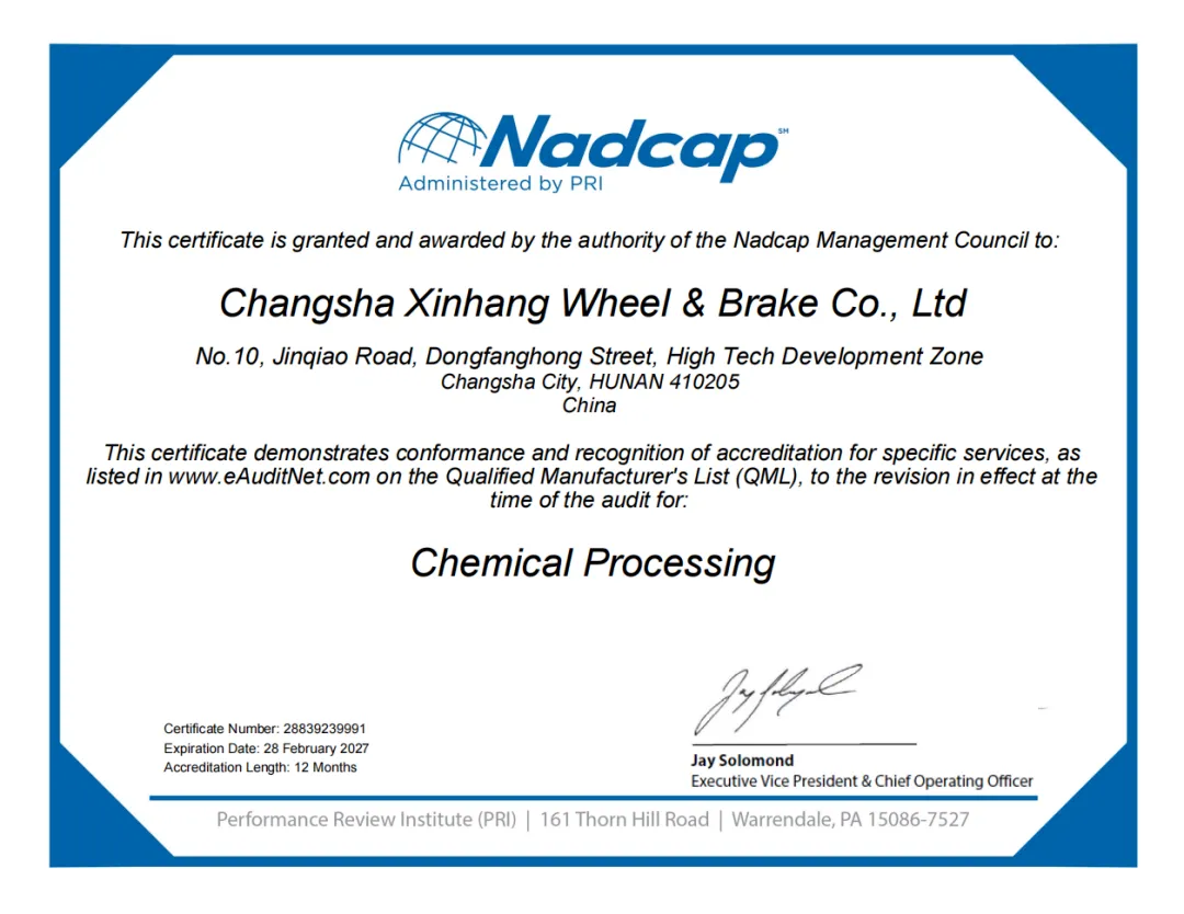 近日,粉冶中心子公司长沙鑫航机轮刹车有限公司顺利通过Nadcap化学处理(CP)特种工艺认证。这是继2025年长沙鑫航取得Nadcap无损检测(NDT)认证以来,特种工艺能力再次获得国际权威认可,标志着公司在航空航天领域的表面处理技术及质量管控体系达到国际先进标准要求。