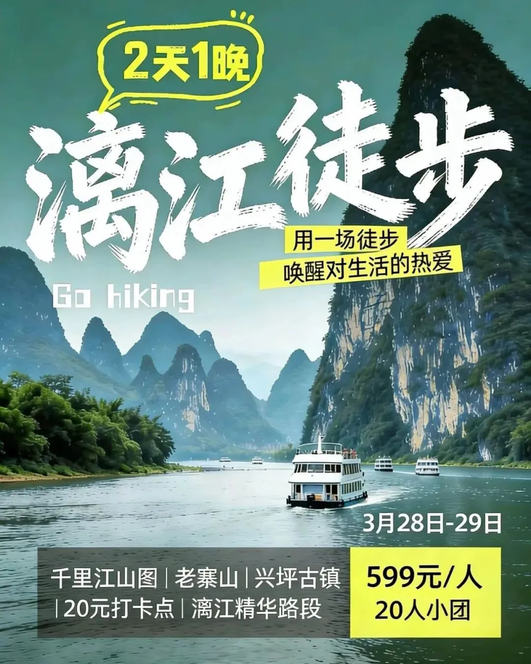 第二天(周日):漓江徒步 → 桂林北 → 长沙