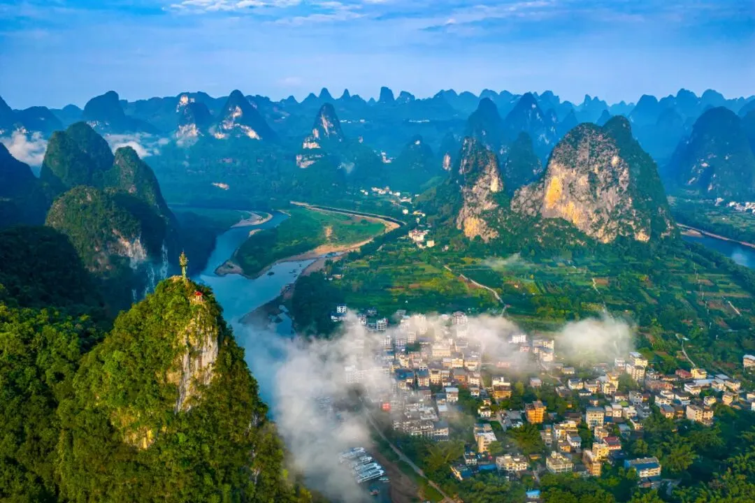 徒步:杨堤→浪石村→九马画山→黄布倒影→兴坪(全程约15KM,4-5h)。途中村庄简单路餐。