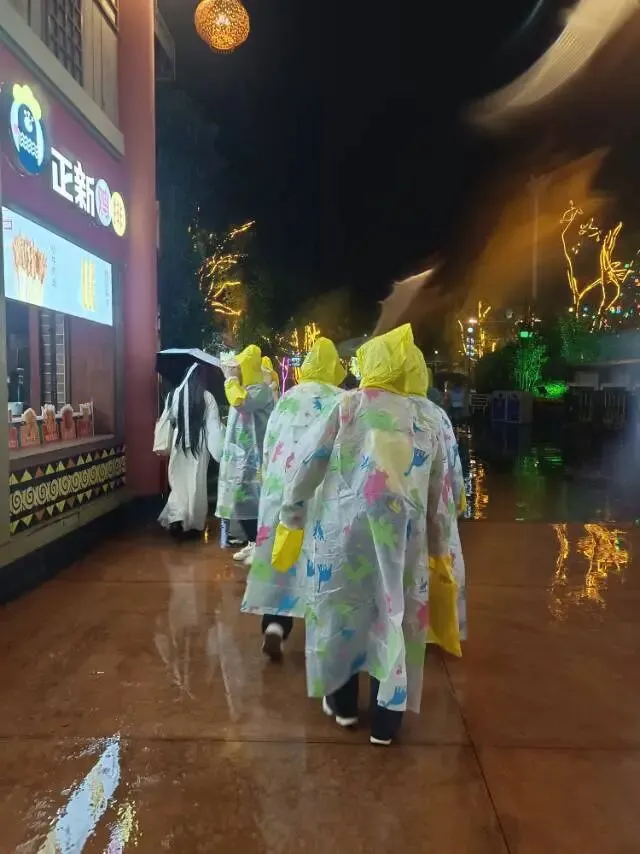 以为娃搞错了位置,当即就去看我们车上的定位,目的地一致,又被妹妹和侄女取笑“后妈”的人设而在开车的妹夫一本正经的对妹妹说:你快点看一下定的门票是“东方神画”的不?!侄女赶紧问“咋滴啦”,妹夫告诉我们还有一个“东方神韵”。随即几个脑袋挤一起就在核对信息,压根就忽略了妹夫的偷笑。在一通捣鼓后才发现是妹夫在骗我们,当场一人送了他一个“呸”后就把他晾一边。由于天公不做美,元旦那天大雨加上大降温,穿着雨衣室外的美景没法看清,室内的活动一个也没落下。