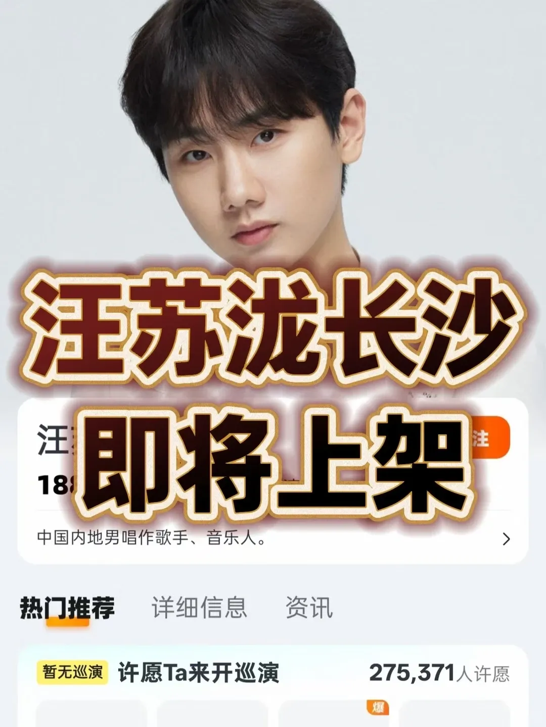 汪苏泷长沙演唱会!主办方太良心了吧!审批己通过,已经准备上架各平台马上开飘!