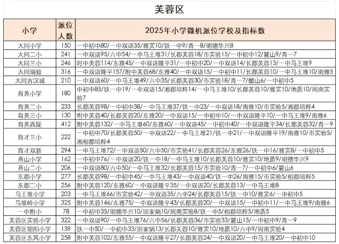 •可填报优质校:湘郡培粹隆平校区(25% 名额占比)、市实验初中部(20%)、一中马王堆(18%)