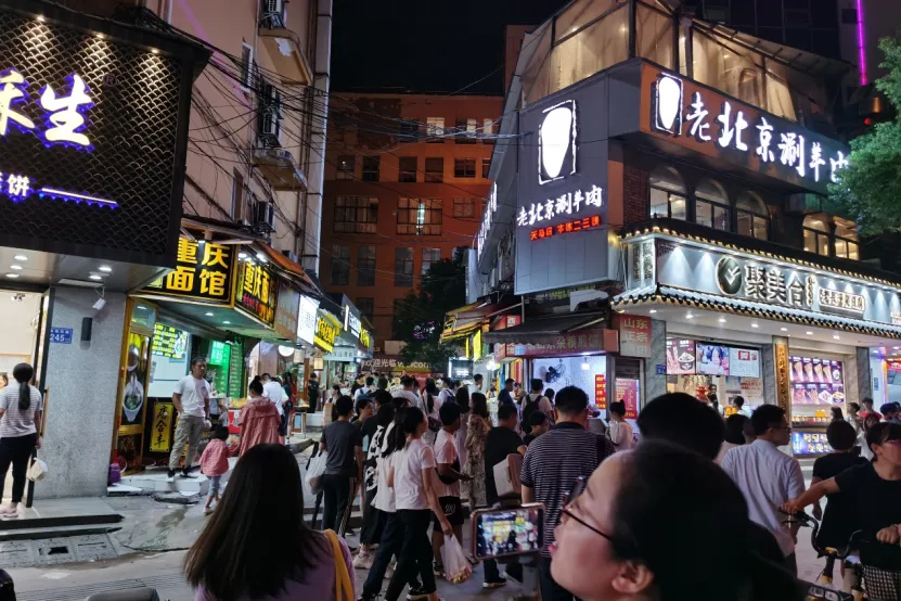 必吃小吃:贯穿三大高校,人均20块吃到撑。天马牛肉饼现炸爆汁,配冰镇荔枝糖水解腻;臭名远扬臭豆腐+酸萝卜灵魂搭配,还有老头子糖油粑粑、乌龙山铁板烧掌中宝,全是青春味。