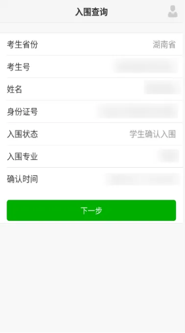 第一步:请核对本人信息,确认无误点击下一步进入录取通知书邮寄地址确认。