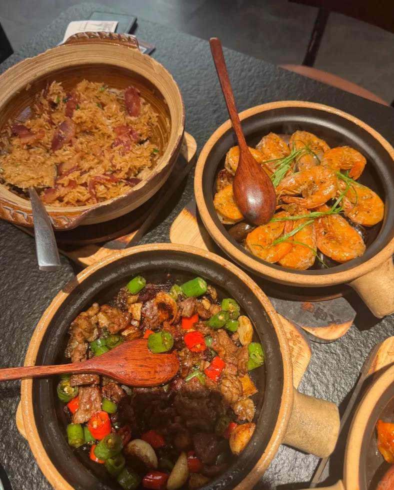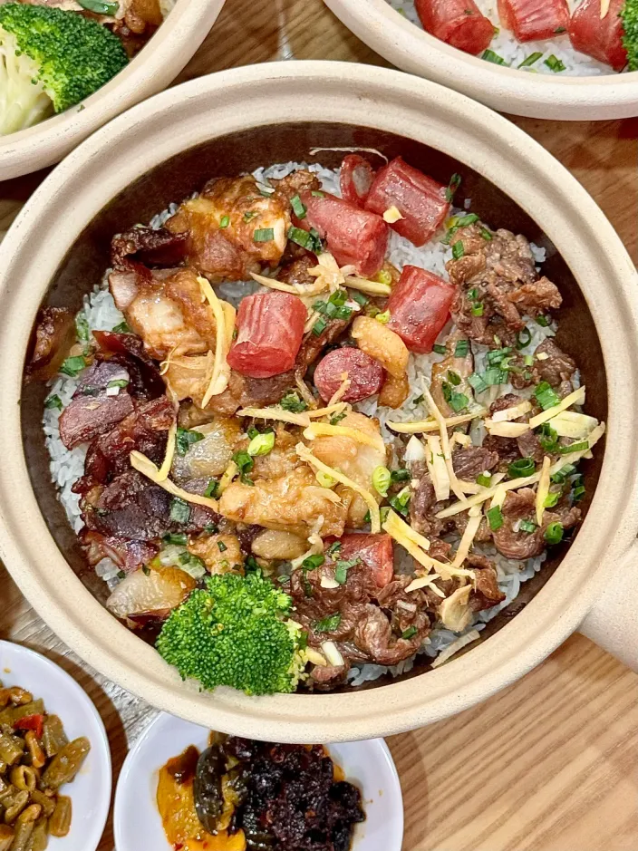 第一次来发记不知道点什么?直接闭眼冲五福临门煲仔饭!大米粒粒分明,牛肉、腊肠、腊肉、豆豉排骨、鸡肉铺得满满当当,最爱底下那层脆脆的锅巴,嚼起来太香了!