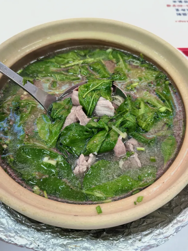 这里还能点到枸杞叶猪杂汤,简直梦回广州!汤里放了很多胡椒粉,热乎乎一口下去瞬间暖透,猪肝也没有什么腥味,降温天来一碗太舒服了。