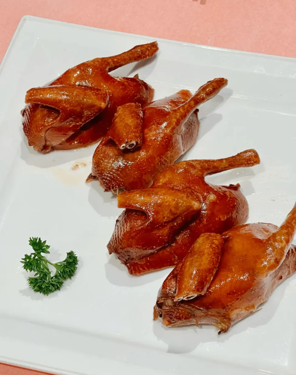 招牌玻璃脆皮妙龄鸽要提前打电话预订,但一定要点!是那种带点中药感的卤香,皮脆肉嫩,咬开汁水直冒。