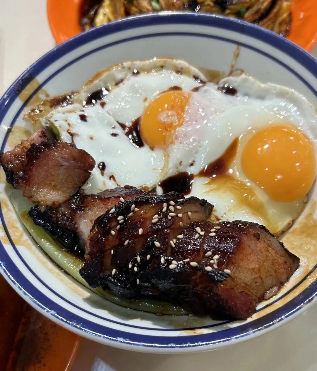 我N刷过的烟火气小店,藏在大学城的一条小巷子里,门面不大,都被学生党塞得满满当当。强烈安利五花肉叉烧荷包蛋盖浇饭——叉烧肥瘦相间油亮诱人,戳开溏心蛋的那一瞬间真的超治愈!蛋液和酱汁裹满米饭,碗底还藏着叉烧汁,一口接一口根本停不下来。