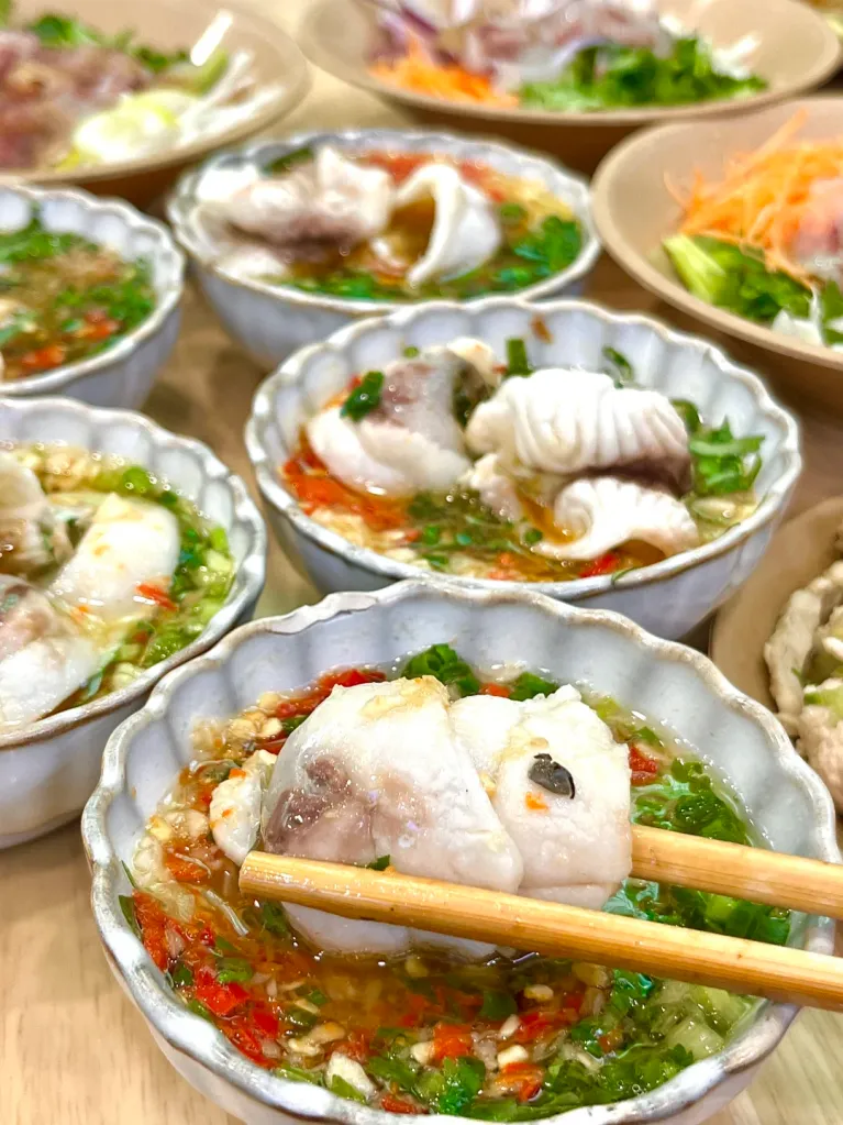 这家店的脆肉鲩很美味,鱼肉现点现切,薄到透光,下锅涮15秒立刻捞起,入口脆弹鲜甜,一点腥味都没有。