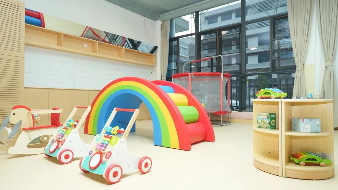 医育康融合区设有心理行为训练室、体能评估指导室、儿童中医保健室、情景互动教室、感统游戏教室等,通过中医融合、推拿、感统等医学手段,推动医疗、养育、康复的资源整合,为特需儿童打造“康复+教育”的希望之地,从诊断到训练再到融入集体,全流程都有专业保障,让婴幼儿在这里既能接受精准康复,也能快乐融入生活。