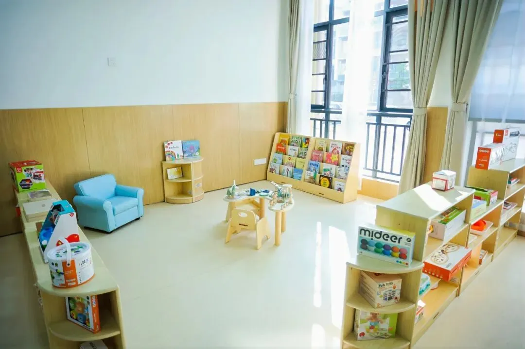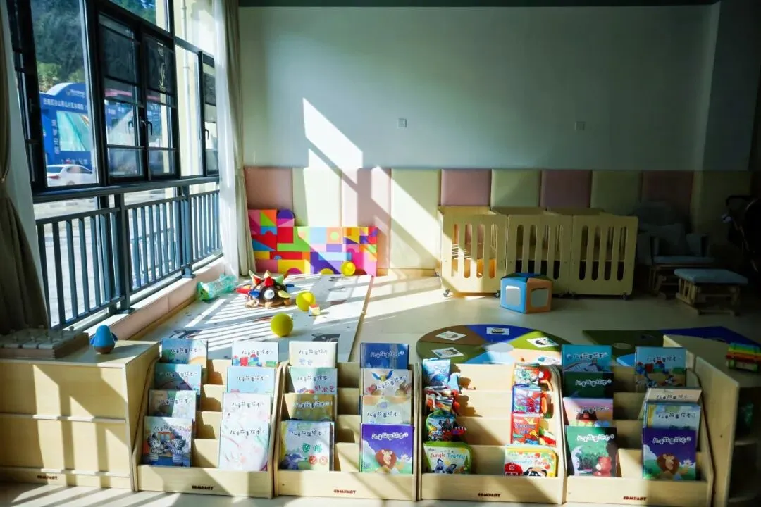 中心精心打造了一个专为0-6岁婴幼儿设计的阅读游戏室,旨在激发早期阅读兴趣、促进感官与认知发展。图书室内拥有近7000册图书,从创意想象、动物自然、品格培养、奇幻冒险、社会适宜、行为习惯等多个维度为婴幼儿提供精神滋养。