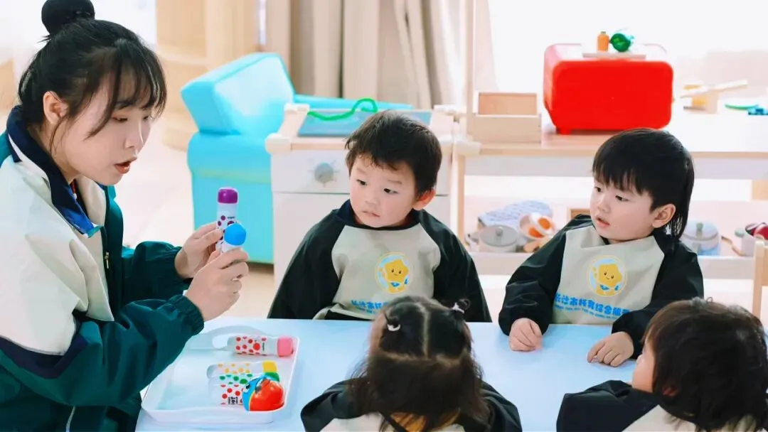 教室设有活动区、生活护理区、阅读区、睡眠区、角色扮演区等,以游戏化教学为核心,涵盖感统训练、语言启蒙、生活技能培养、社交互动四大模块,通过绘本共读、音乐律动、精细动作、感官游戏等适龄课程,激发婴幼儿语言表达与认知潜能。