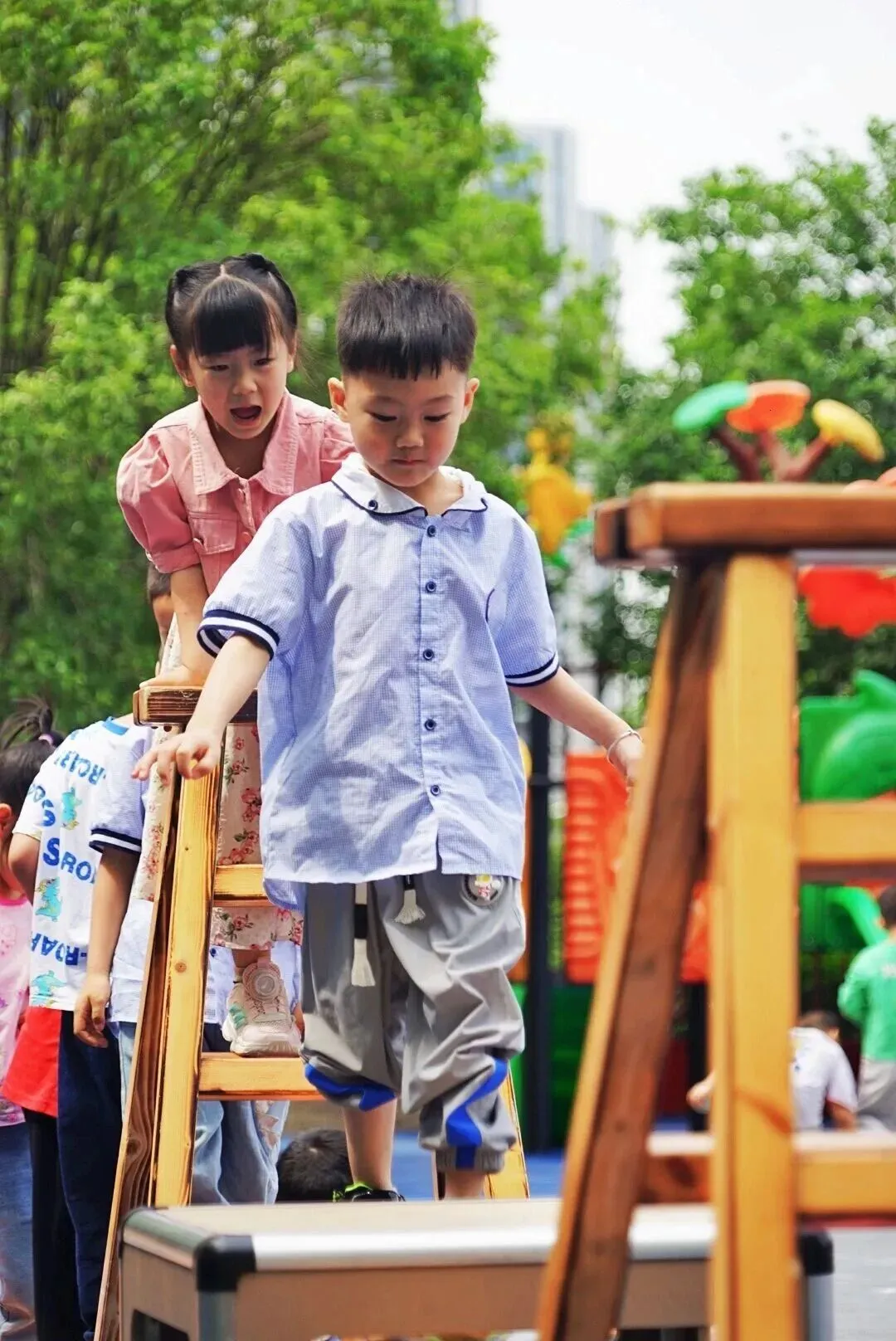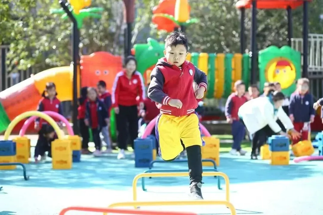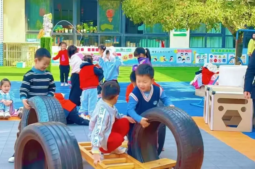 2.园所开展了“体适能游戏课程”,引导幼儿在活动中主动发展,倡导还幼儿一个“健康”、快乐和充满童趣的童年。