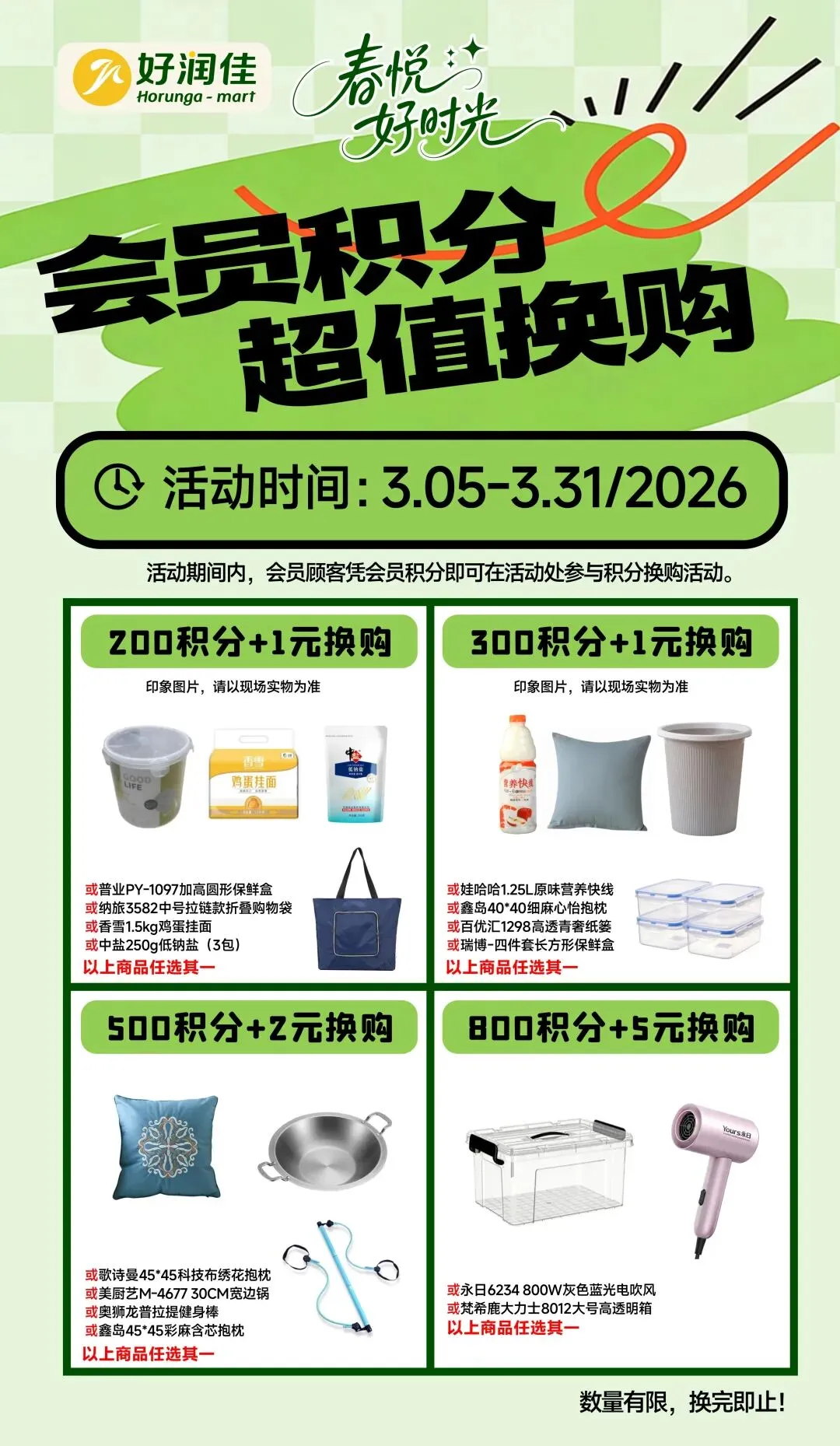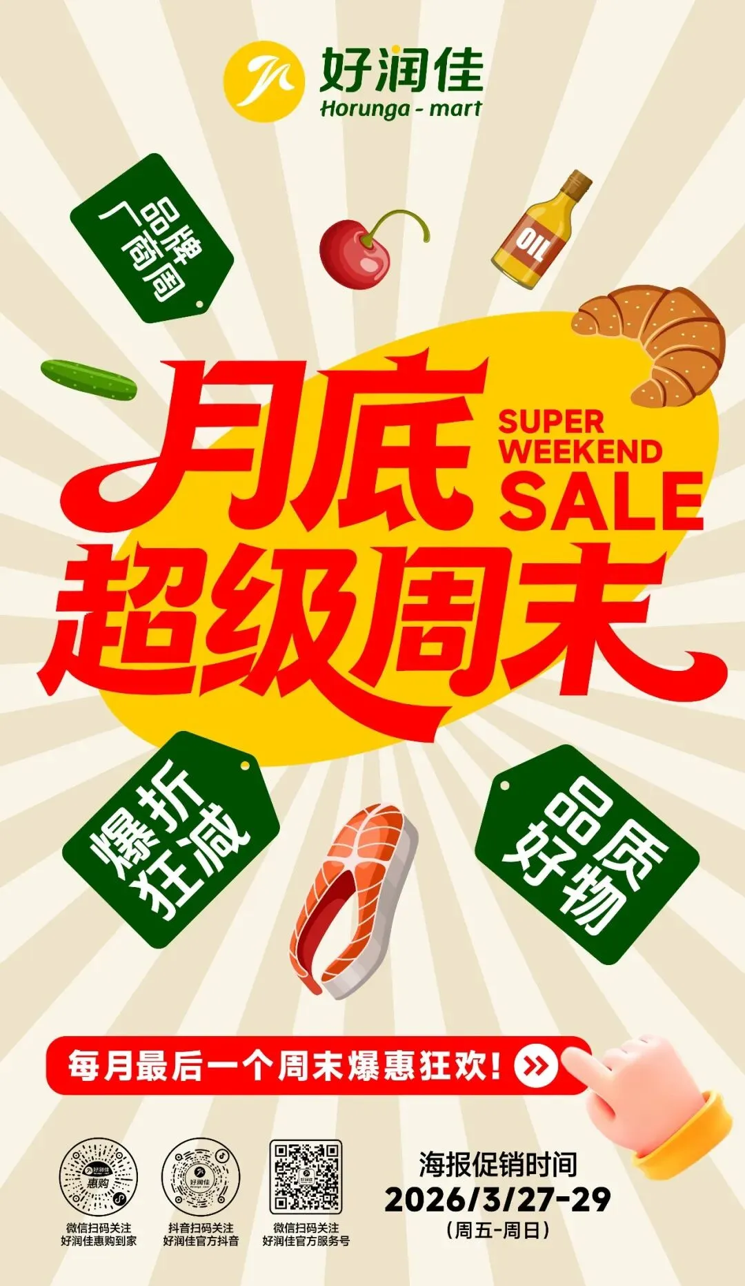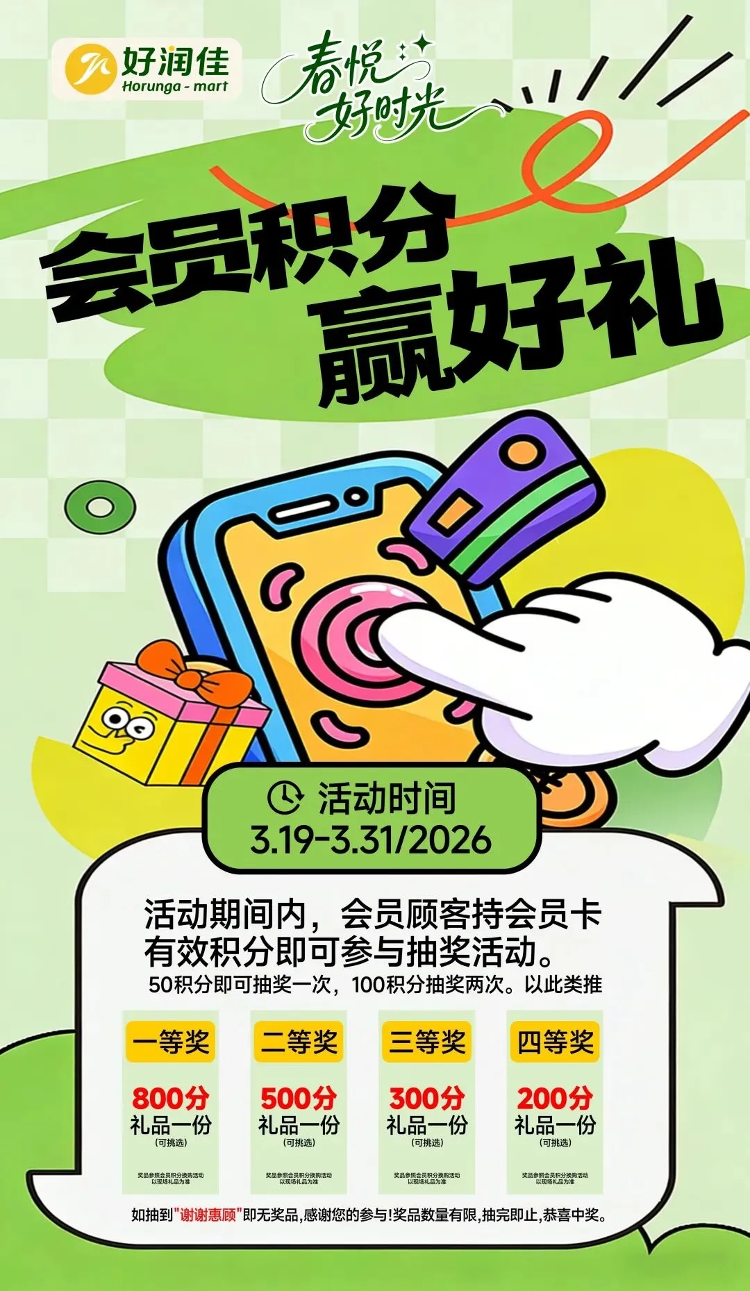 >【#好润佳长沙大道店】3.27-3.29超级周末来袭,双倍积分&积分换购&积分抽奖