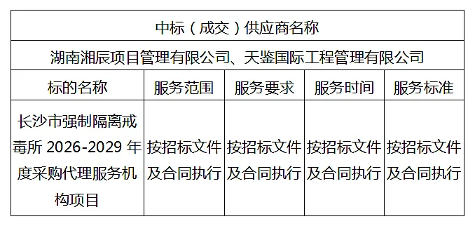 长沙市强制隔离戒毒所2026-2029年度采购代理服务机构项目