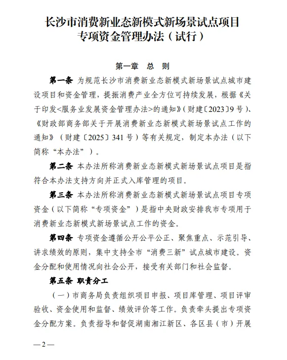 【通知】长沙市商务局 长沙市财政局关于印发《长沙市消费新业态新模式新场景试点项目专项资金管理办法(试行)》的通知